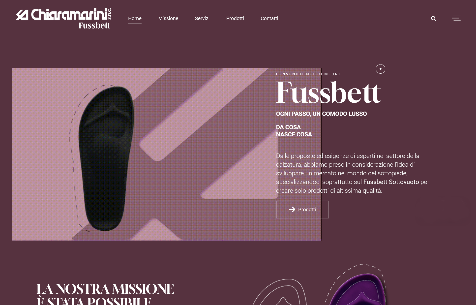 Il nuovo sito realizzato per l’azienda Chiaramarini di Comunanza (AP) e dedicato al suo prodotto di punta, il Fussbett per il settore calzaturiero.
