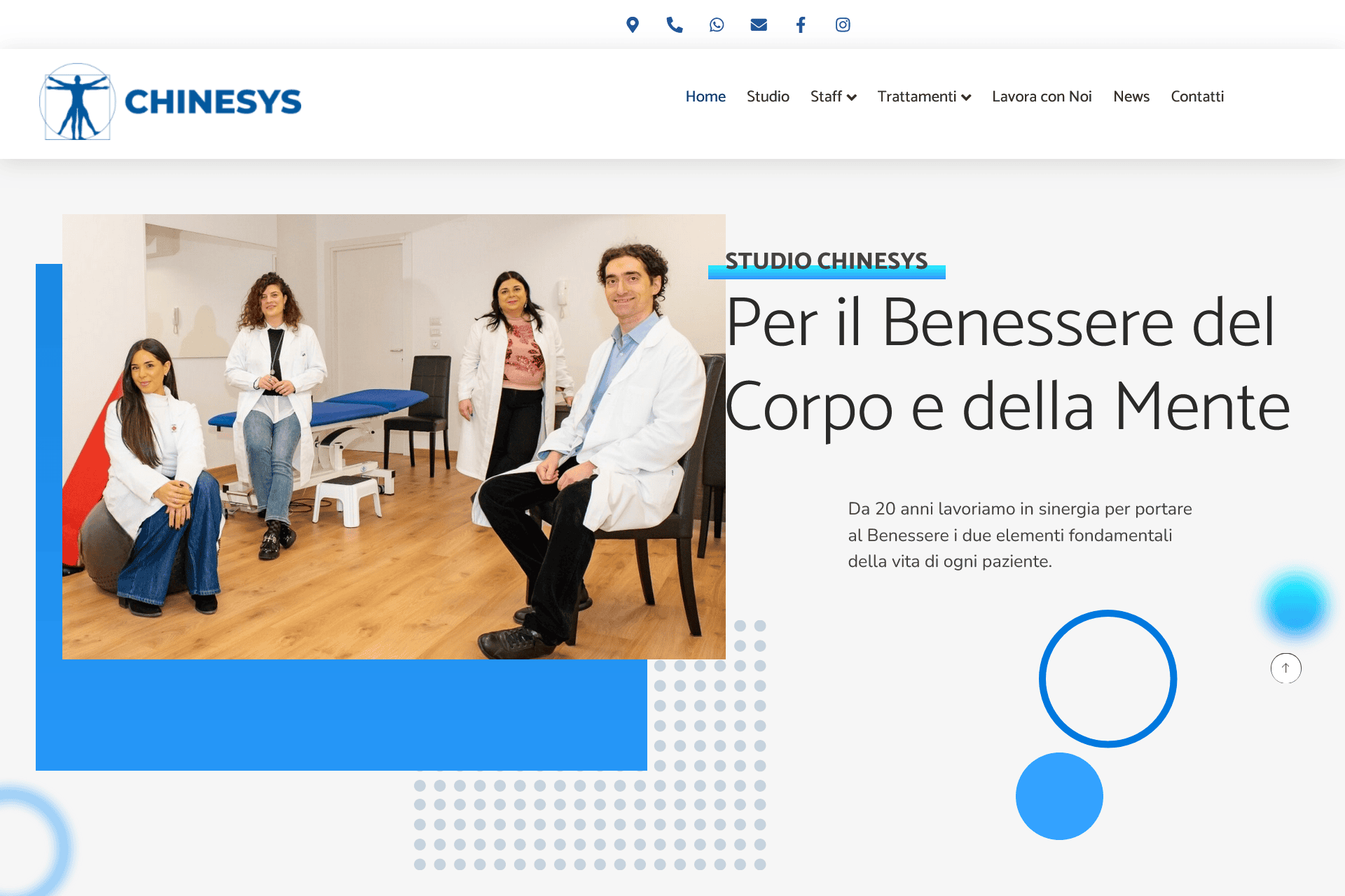Completano il sito una pagina News curata esclusivamente dai medici interni dello studio Chinesys ed una consueta pagina Contatti dove sono presenti tutte le principali informazioni di contatto, un form di contatto ed una mappa per geolocalizzare lo studio.