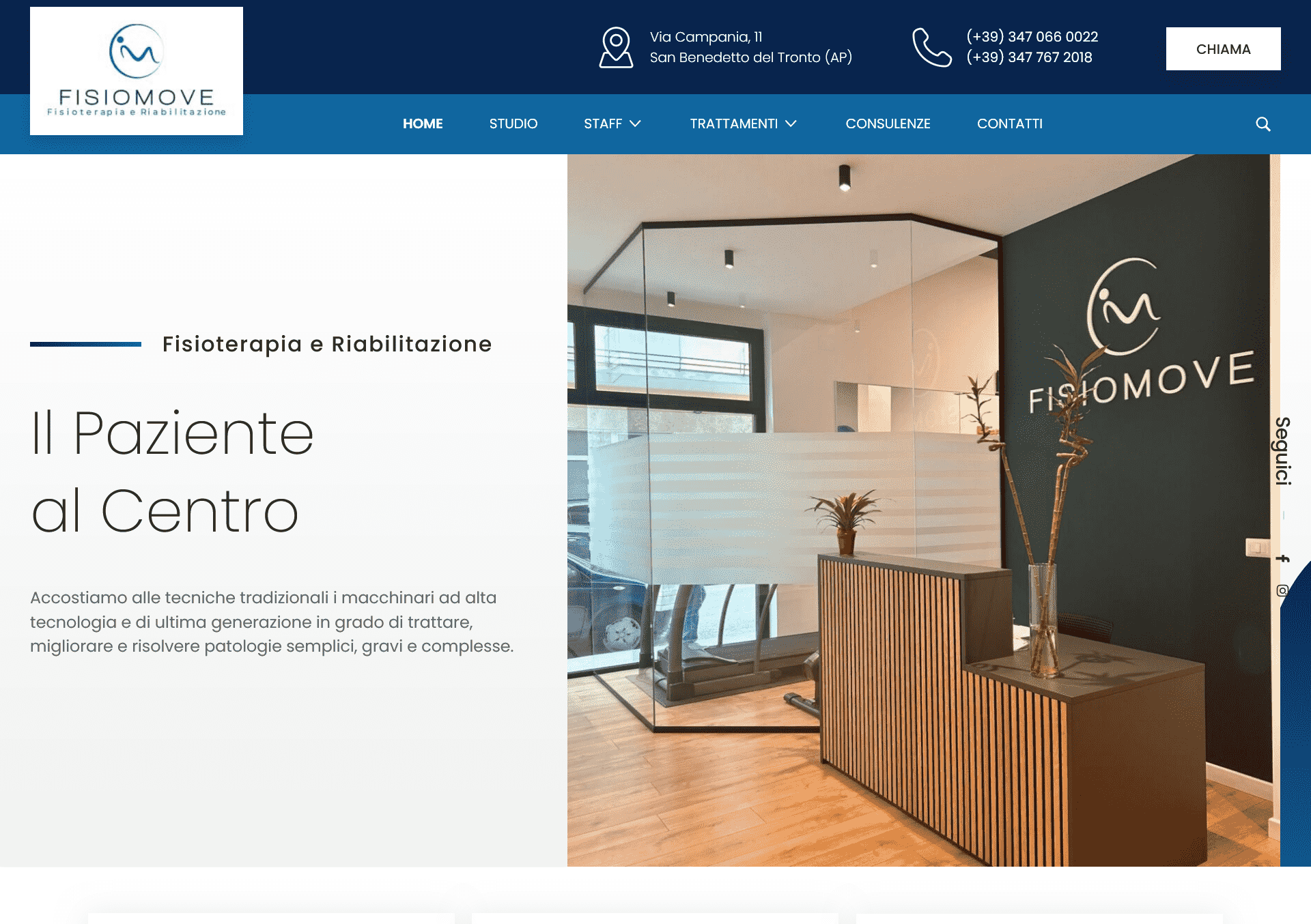 Il nuovo sito realizzato per lo studio di fisioterapia e riabilitazione Fisiomove di San Benedetto del Tronto (AP).